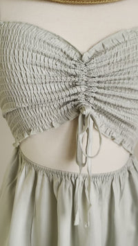 This effortless mini is perfect to throw on for an easy day look! It features a open front, with adjustable straps, side pockets, lightweight and has an elastic top for the perfect fit.